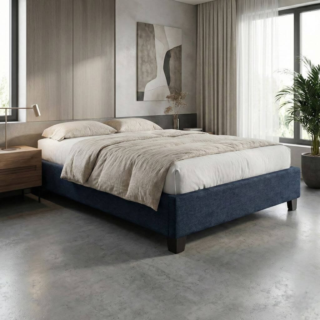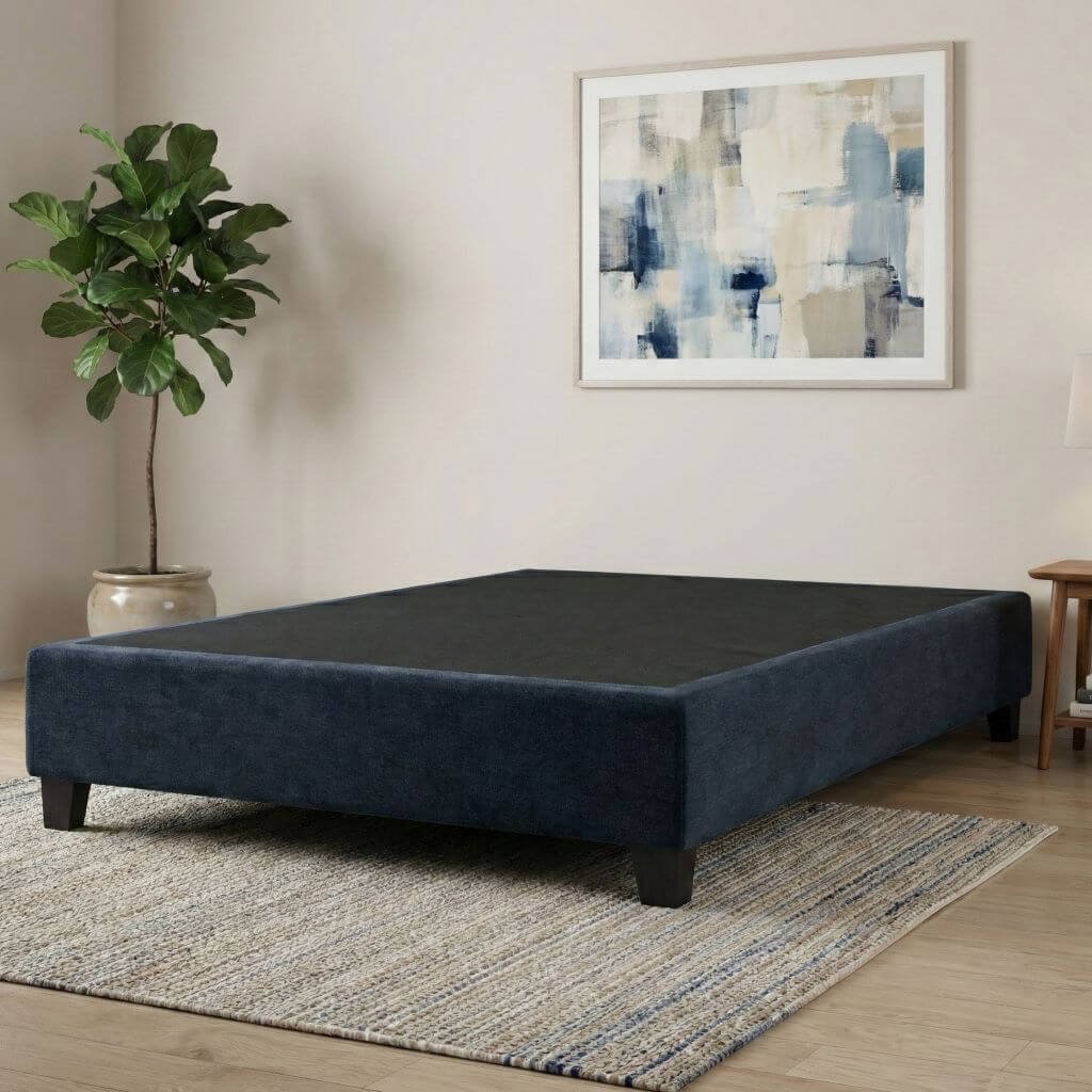 Esta no es una base cualquiera. Su tapizado en tela de poliéster tipo Denim ofrece una textura suave y duradera, muy superior a las telas convencionales.