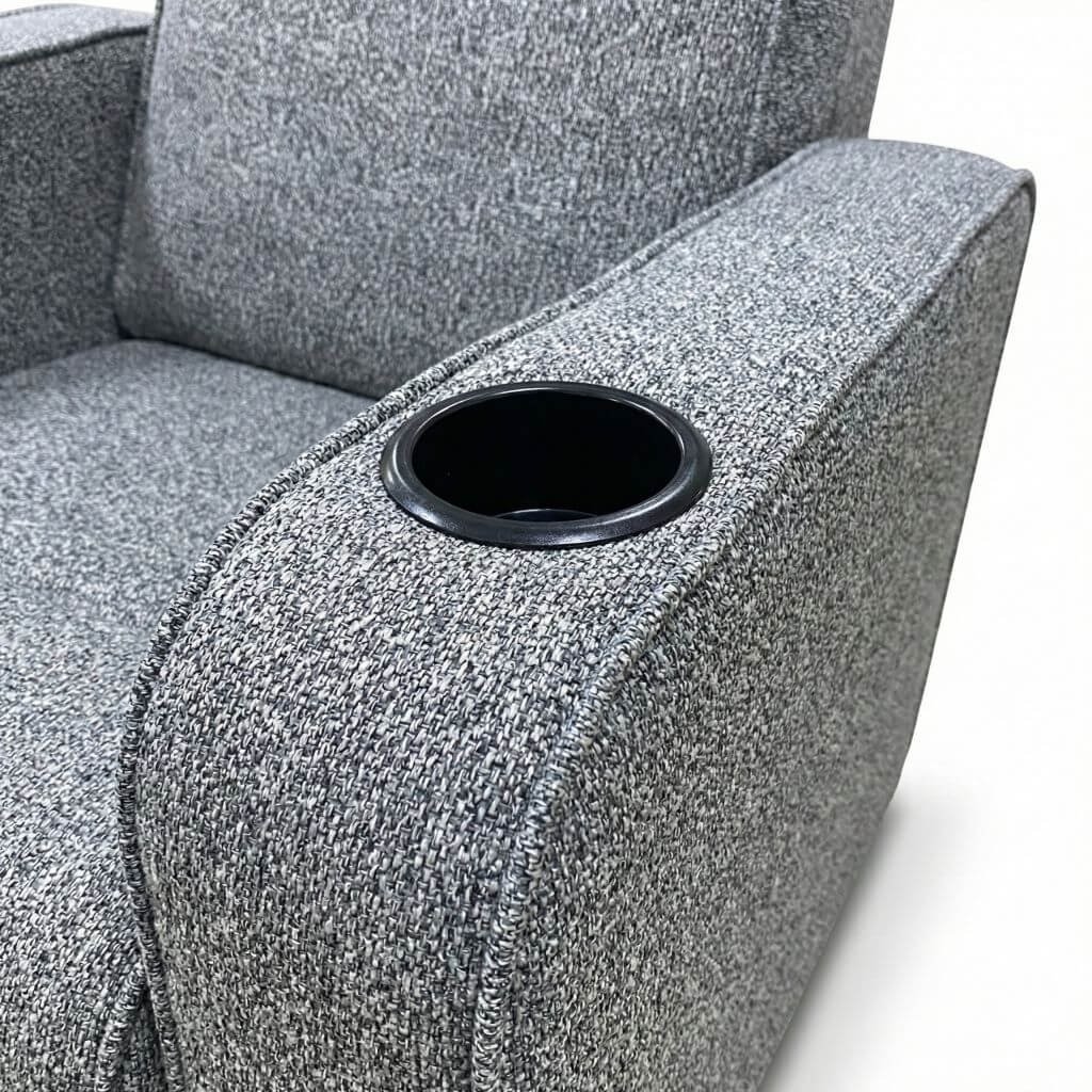 Su tapizado en tela poliéster color Gris Jaspeado es suave al tacto, transpirable y resistente, ideal para disfrutar de largas maratones de series o lectura sin sentir calor.