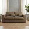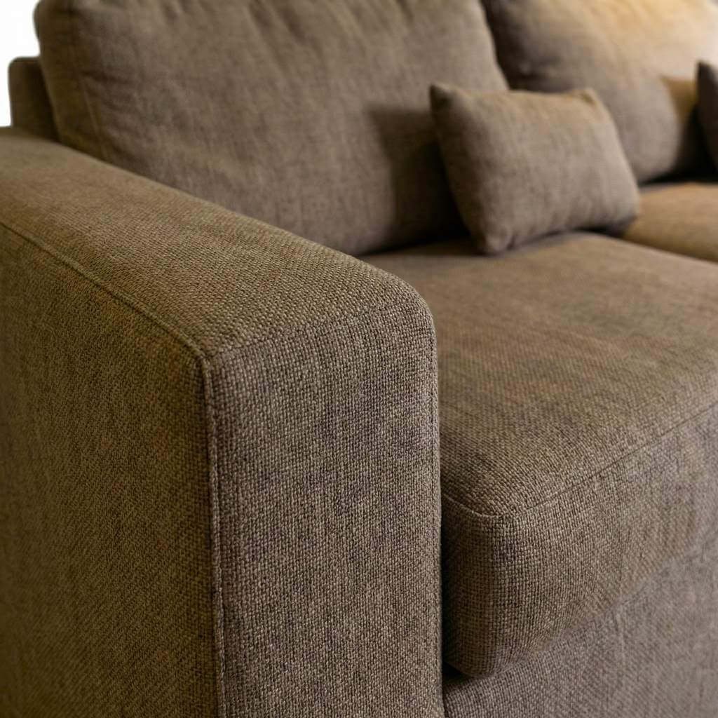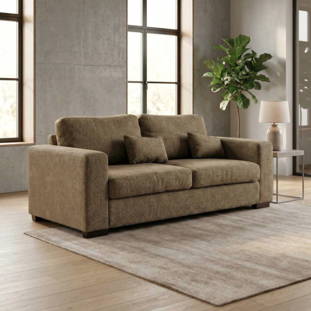 Este cálido tono sepia disimula muy bien el desgaste diario. También aporta una sensación terrenal y añade profundidad a tu decoración. Por otro lado, sus reposabrazos estructurados y el volumen de sus cojines invitan al descanso. En resumen, ofrece una experiencia visual y táctil de primera categoría.
