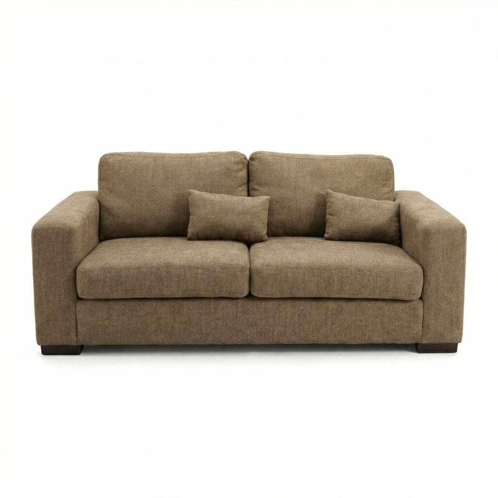El atractivo visual del sofá Dante reside en sus líneas limpias y su perfil estético. Se trata de un auténtico sillon de 2 plazas minimalista que no satura el ambiente. Al mismo tiempo, destaca gracias a su sofisticado tapizado en color sepia.